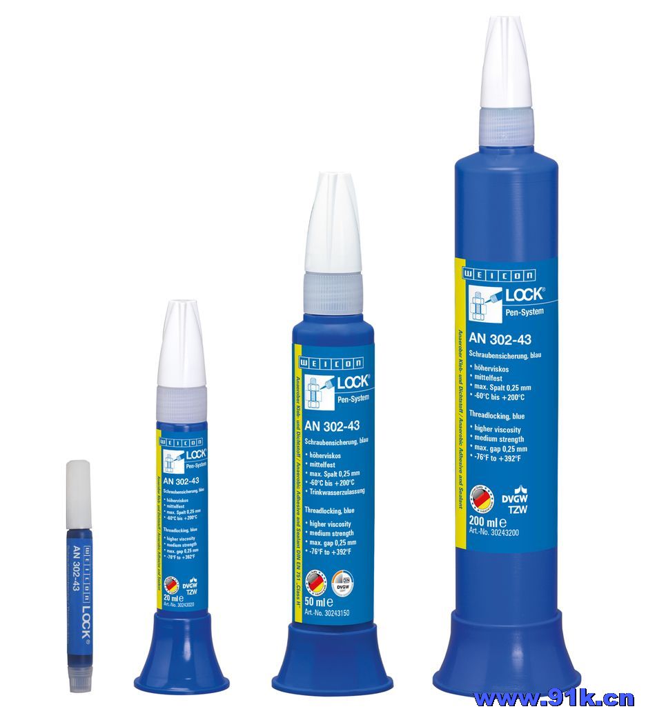 IMPA:812913 WEICON AN302-43 螺紋鎖固膠/螺紋膠 50ML螺紋膠,經DVGW/KTW認證,適用于飲用水領域,食品級認證Threadlocking |DVGW and dri
